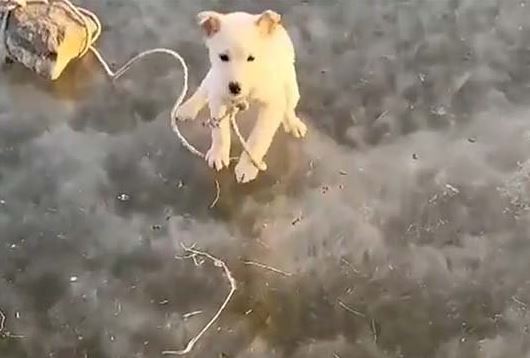[ 빙판위에 강아지 묶어놓은 주인 ]