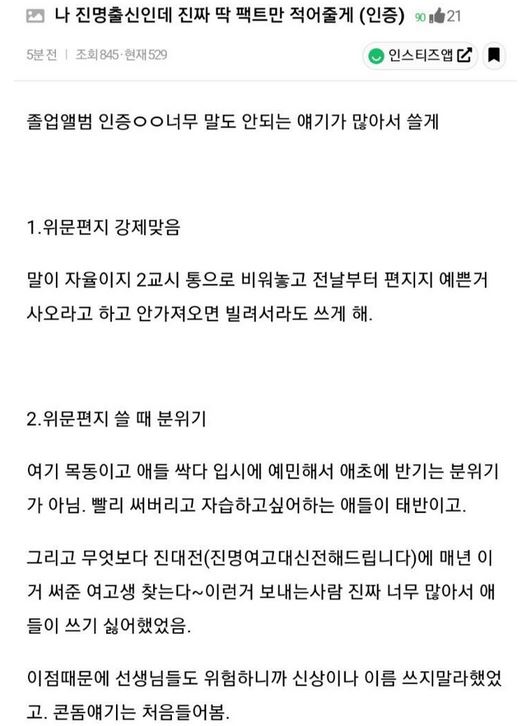 안녕하세요, 진명여고의 여고생이 군 장병을 조롱을하는 듯한 위문편지를 보낸 사실이 알려져 논란이 되고있는데 관련 내용 알아보겠습니다.