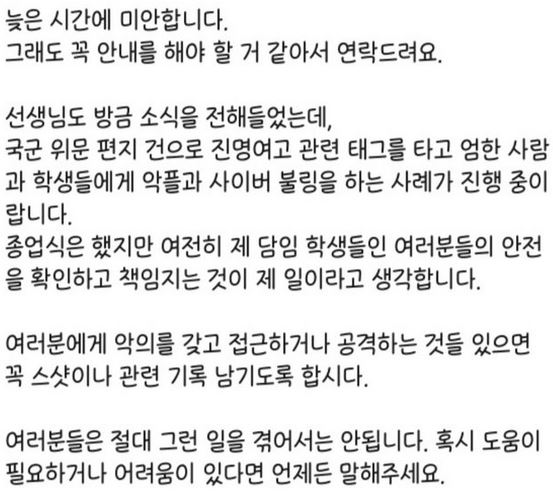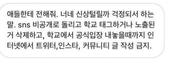 - 현재 진명여고 학생들의 신상이 무분별하게 털리고 있어 심각함을 느낀 선생님은 아래와같은 공지(?)를 남김