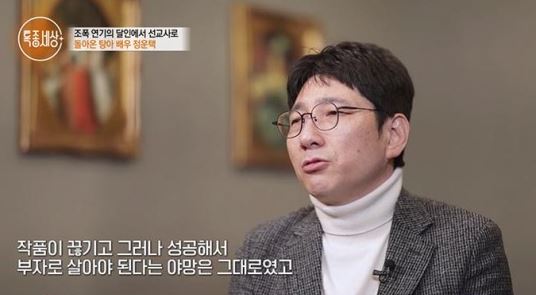 - 배우로 잘나가던 정운택이 갑자기 선교사로 새출발을 택한 이유는 뜨고 나서 변한 자신의 모습 때문이었다고 함.
