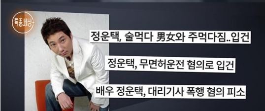 - 이후 정운택은 2011년 술자리 폭행 사건, 2013년 무면허 운전 적발, 2015년 대리기사 폭행 사건 등으로 물의를 일으키며 연예계에서 멀어졌으며 스크린에서 자취를 감춘 그는 경제적으로도 어려움을 겪음.