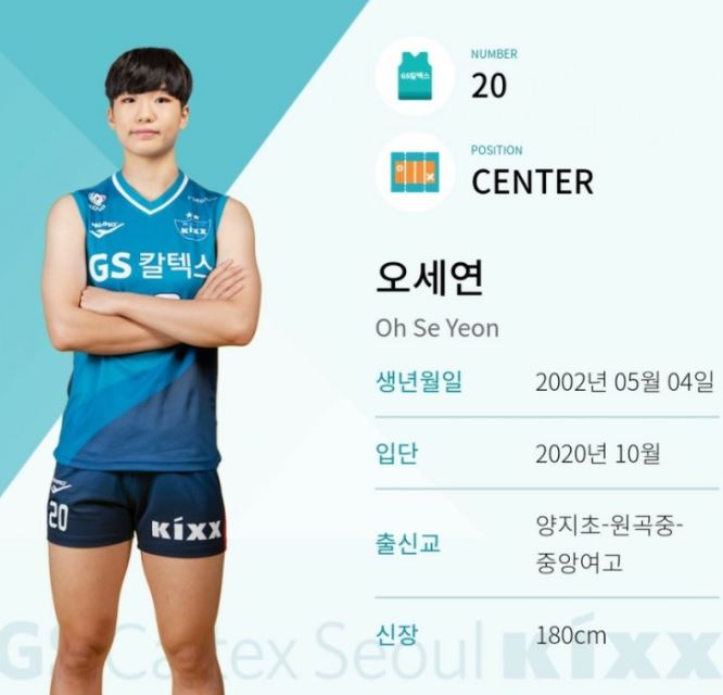 오세연 신체 : 키 180cm에 소속팀은 GS칼텍스 입니다.