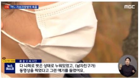 지목된 가해자는 피해자와 한때 사귀던 가수이자 작곡가인 A 씨였고, 피해자 지인들은 둘이 교제하던 시기 A 씨가 보낸 불법 촬영 영상을 보고 피해자가 고통스러워했다고 설명했습니다.