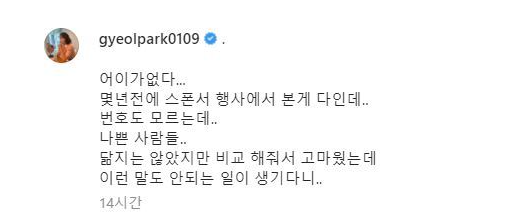 박결은 2022년 10월6일 자신의 소셜미디어에 "어이가 없다. 몇 년 전에 스폰서 행사에서 본 게 다인데"라며 "전화번호도 모른다. 나쁜 사람들. 닮지는 않았지만 비교해줘서 고마웠는데 이런 말도 안 되는 일이 생기다니"라며 루머에 선을 그엇습니다.