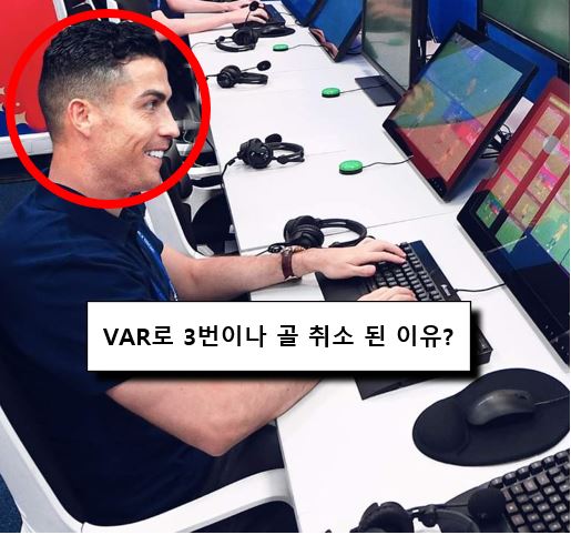 호날두와 메시가 세계 최고의 라이벌 관계임을 활용해 호날두가 관여해 VAR로 무려 3번이나 취소되는 보기 드문 장면이 나왔다는 컨셉 이였습니다.