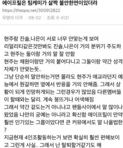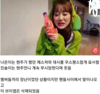 - '이현주의 불성실로 다른 에이프릴 멤버들이 힘들었다.'