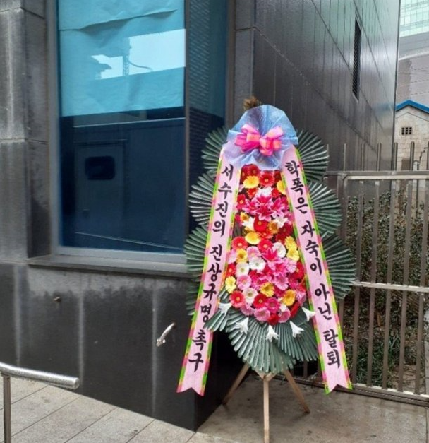 [ 수진 학폭, 진상규명 촉구 화환 등장 ]