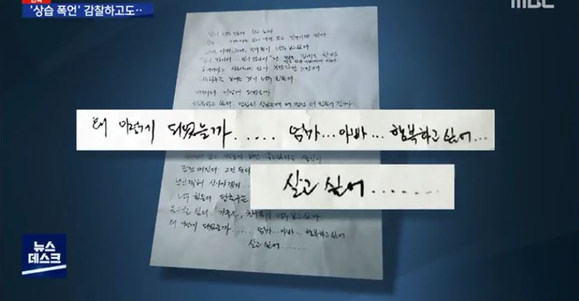 - 당시 나이 33살이던 2년 차 초임 검사는 유서내용에 '행복하고 싶다', '살고 싶다'고 남김