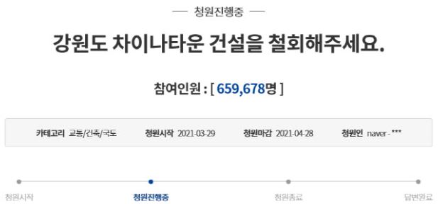 - '강원도 차이나타운 건설을 철회해주세요.'