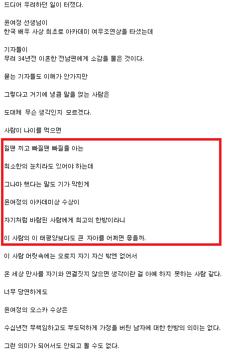 | 윤여정 오스카상 수상에 조영남 충격 발언(+이석원, 장성철 비판) (0) | 2021.04.27 |