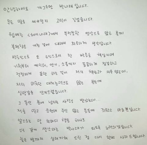 [ 박나래 자필 편지 사과문 ]