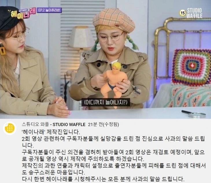 - 2021년 4월 24일, 헤이나래 제작진은 스튜디오 와플 유튜브 채널 커뮤니티 게시판에 사과문을 게재함