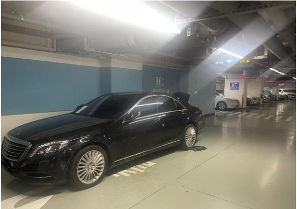 글쓴이는 인천 송도의 모 아파텔에서 벌어진 일이라며 주차장 내 주차구역이 아닌 차량 통행로에 벤츠 차량이 세워져 있는 사진 4장을 공개했습니다.