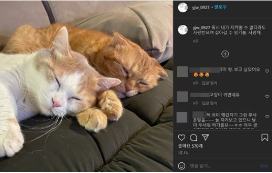 - 이와 함께 반려묘로 보이는 고양이 두 마리가 잠든 사진을 첨부했음