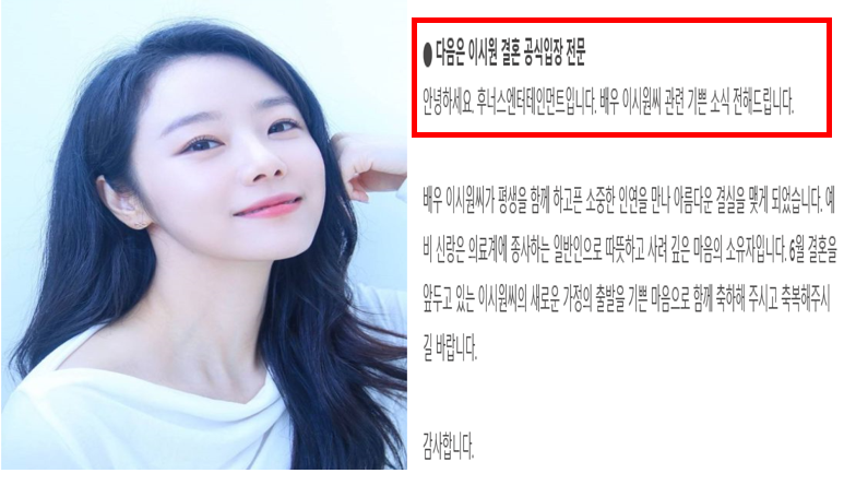 배우 이시원이 서울대 동문인 의사와 결혼을 합니다. 2021년 5월 26일 들려온 소식에 의하면 이시원은 6월 말 서울에서 결혼식을 올립니다.
