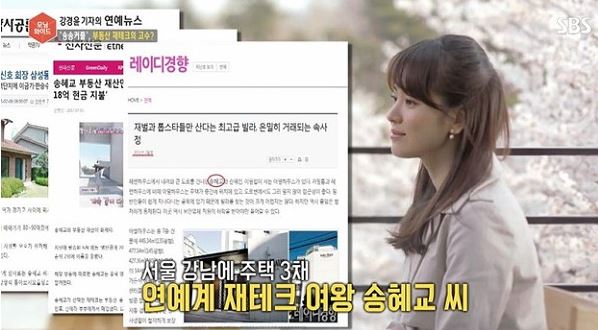 - 송혜교는 과거 서울 삼성동에만 3채의 부동산을 보유했었음