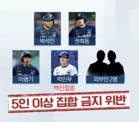 - 5인 이상이 한 객실에서 모이는 건 "숙박 시설 정원 초과 입실 금지" 방역 지침 위반이며 사적 모임 인원을 제한하고, 외부인과 만남을 자제하라는 KBO 리그 방역 매뉴얼에도 어긋나는 행동이였다며 NC다이노스 선수들은 비난을 받고있음.
