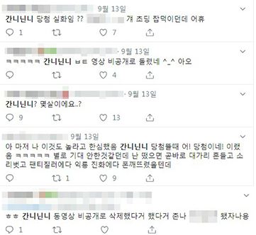 - 간니닌니 트위터, 유튜브에 인신공격성 트윗과 자살하라는 댓글을 달았음