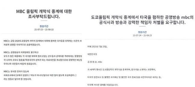 - 논란이 커지면서 MBC 중계방송에 대한 진상 조사를 촉구하는 청와대 청원까지 올라옴