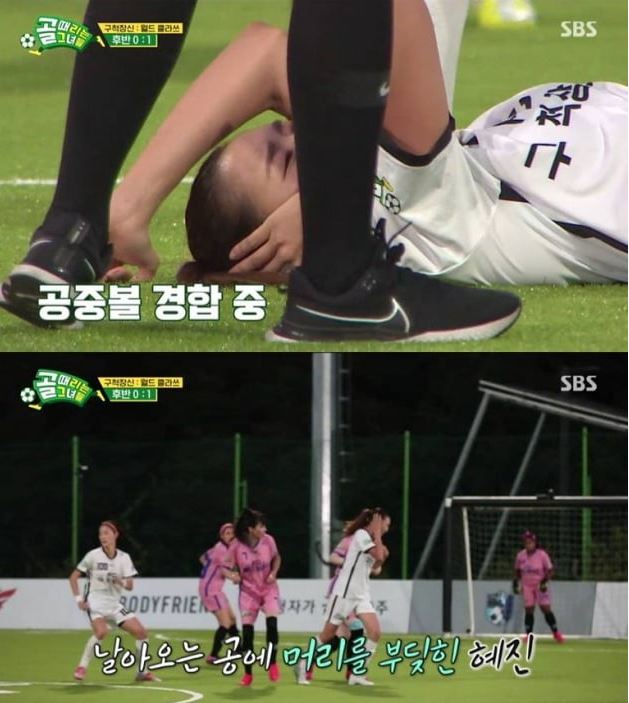 2021년 9월 8일 방송된 SBS "골 때리는 그녀들"에서 한혜진은 머리 부상을 당했습니다. 한혜진이 주장으로 있는 구척장신 팀이 월드 클라쓰와 3, 4위 동메달 결정전에서 대결을 펼쳤는데, 격렬한 몸싸움으로 어지럼증을 호소했는데, 이날 한혜진은 월드 클라쓰의 구잘과 공중볼 다툼을 벌이다 공에 머리를 맞았습니다. 함께 부딪힌 구잘은 "귀로 맞았다"면서 "괜찮다"고 바로 일어났지만, 한혜진은 "어지럽다"면서 쓰러졌습니다.