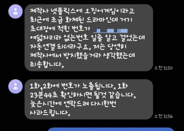 저도 오징어게임을 보면서, 요새는 보통 전화번호를 모자이크(블라) 처리를 많이하는데 이건 그냥 다 나오네 라고 생각했었는데 이런 문제가 발생을 해버렸네요. 10년넘게 쓴 번호라 번호를 바꾸기도 쉽지않을테고 정말 힘들것 같네요. 하루 빨리 해결됐으면 좋겠고 이글을 보셨다면 혹시라도 해당 번호로 연락하는 일은 없었으면 좋겠습니다.