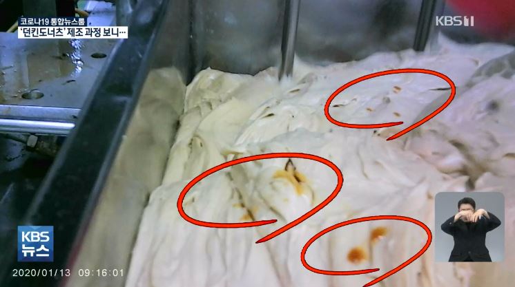 해당 보도에 따르면, 밀가루 반죽 바로 위 환기장치에 기름때와 방울이 맺혔으며 불규칙적으로 낙하해 반죽한 도넛에 튀겼을 것이라는 의혹이 제기됐습니다.