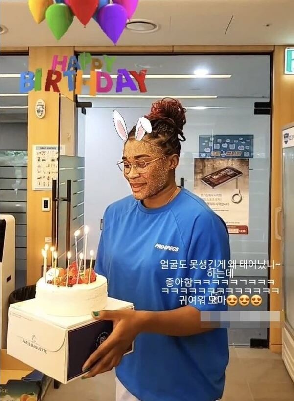 최은지는 2021년 10월 14일 인스타그램 스토리에 소속팀 외국인 선수 모마의 생일 축하 파티 인증 사진을 올렸습니다.