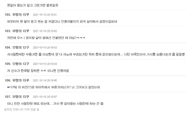 반면 "그냥 노래 가사인데 너무 민감하게 생각하는 듯" "친하면 그럴 수 있다" "친구끼리 장난 친 것 같다" 등의 반대 의견을 보이는 누리꾼도 있었습니다.