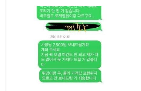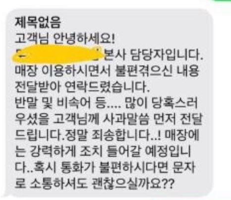 - A씨는 "저도 남의 집 자식인데 왜 모르는 사람한테 욕을 들으며 진상 취급을 받아야 하는지 모르겠다. 사장님껜 그냥 돈 보내드릴 테니까 계좌 주시고 본사랑 연락하겠다며 통화를 끊었다"고 함.