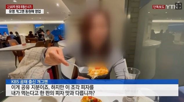 기획부동산 홍보를 위해 KBS 공채 출신 유명 개그맨을 영업사원으로 두기도 했는데 해당 개그맨은 홍보 영상에서 피자를 앞에 두고 "이게 공유 지분이다"라며 "이 조각 피자를 내가 먹는다고 한 판의 피자 맛과 다르냐"면서 홍보했습니다.