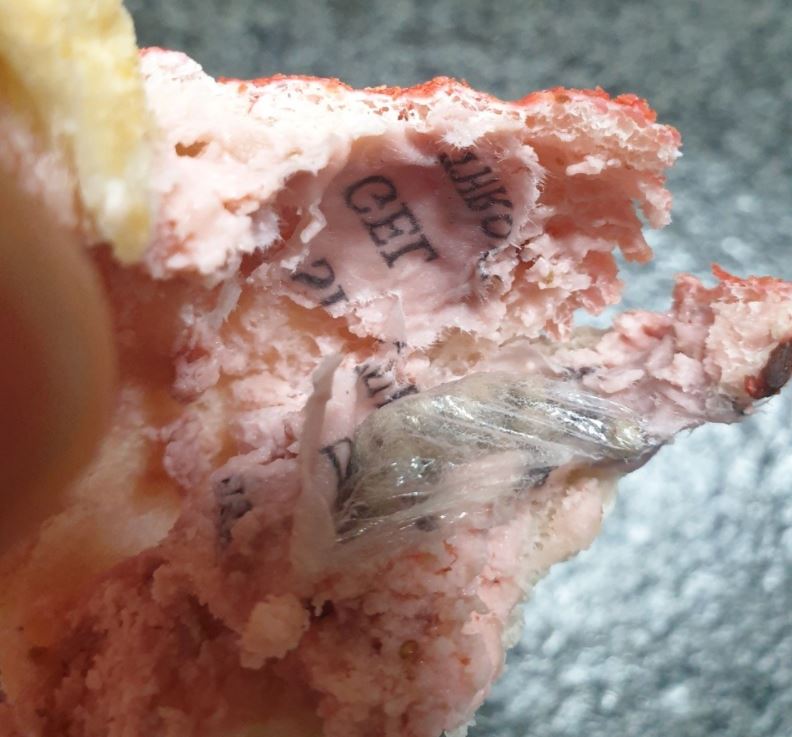 - 집에 돌아와 33개월 된 딸에게 딸기빵을 먹였는데, 빵 속에서 비닐 포장에서 터져나온 제습제를 발견함.