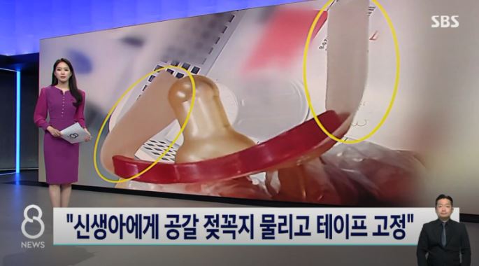 - 또한 "저희 아기는 빈호흡증후군 등으로 아주대 신생아중환자실에 있었고, 공갈젖꼭지 물린상태에서 테이프 붙여져 있었어요"라며 "그걸 보고 기사에서처럼 심각하게 생각하지 않았다"고 함.