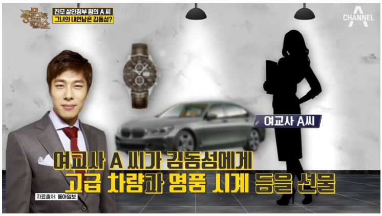 - '친모를 살인청부한 현직 중학교 여교사의 내연남이 스포츠 해설가이자 전 쇼트트랙 선수 김동성'이라고 폭로