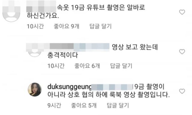 - '속옷 19금 유튜브 촬영은 아르바이트로 한 거냐.'