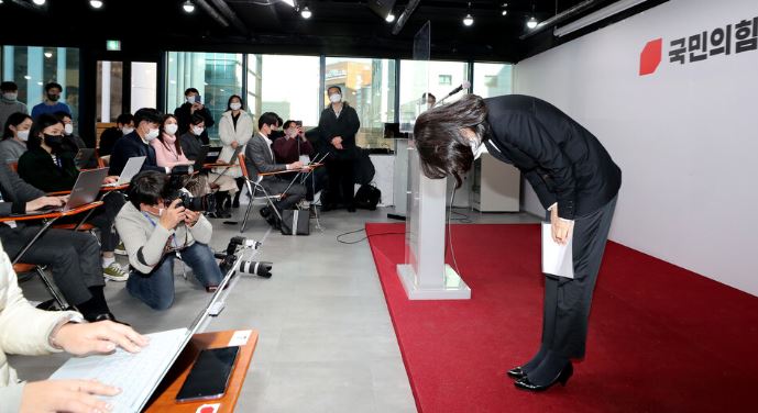 - 2021년 12월 26일, 김건희는 미리 준비한 입장문을 읽으며 고개를 숙였음