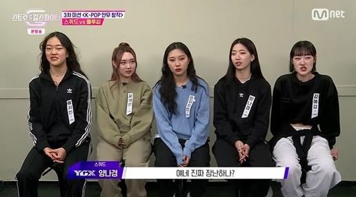 - 중간 점검에서도 신경전은 이어졌는데 클루씨의 안무를 카피한 스퀴드가 이들 앞에서 퍼포먼스를 선보이자 클루씨는 "테크닉할 때 골반을 들어야 한다"고 지적함.